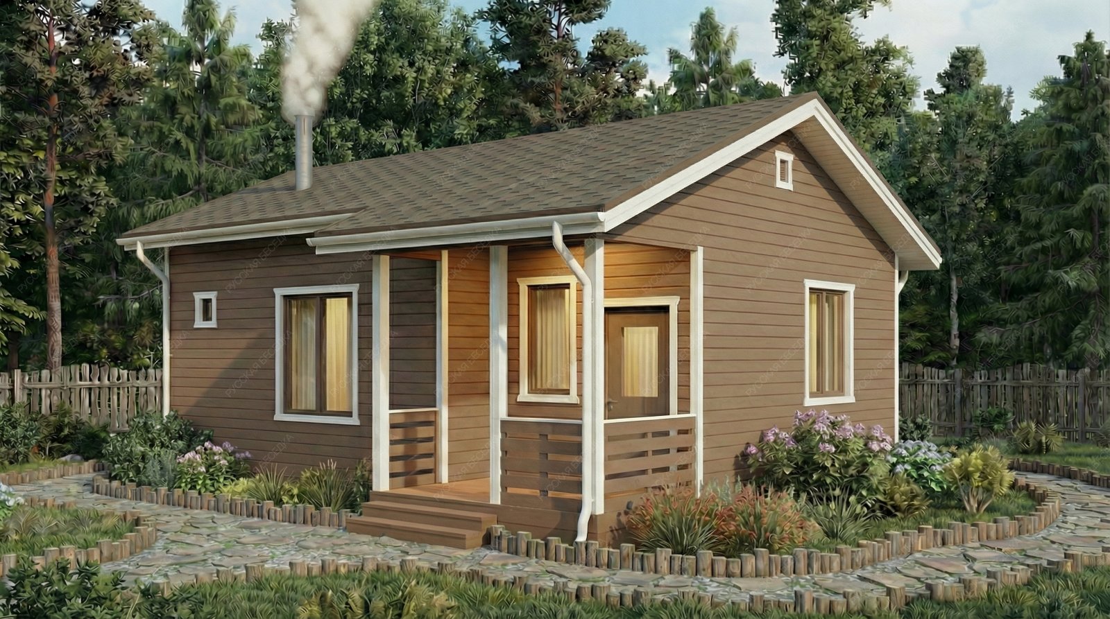 Огнебиозащита (бесцветная) или декоративный деревозащитный состав "Здоровый дом" (цвет на выбор) – нижняя обвязка, лаги, пол и цокольная доска.