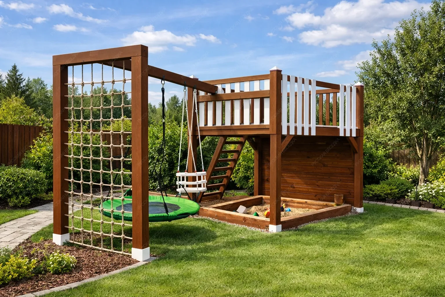 Деревянные детские спортивные комплексы — это пространство, где рождается сила, ловкость и уверенность в себе. Натуральное дерево, экологичное и тактильно тёплое, создаёт особую атмосферу уюта и безопасности, принципиально отличаясь от холодного металла. Это не просто снаряды, а настоящий островок приключений, который растёт и меняется вместе с ребёнком. Каждый комплекс представляет собой модульную систему, где базовую конструкцию дополняют разнообразные элементы. Гладкая горка для весёлого скольжения, мини-скалодром для развития координации, классические качели, рисующие в воздухе плавные дуги, и надёжный турник для формирования правильной осанки. Верёвочные лестницы и канаты учат балансу и работе с собственным весом, а баскетбольное кольцо оттачивает точность броска. Секция с лестницей может быть расположена под любым углом, создавая уникальную траекторию для лазания. Такая вариативность позволяет создавать сооружение под конкретные задачи и доступное пространство. Все комплектующие можно комбинировать и заменять, адаптируя игровую зону под взросление ребёнка и появление новых интересов. Конструкции отличаются безупречным качеством обработки: отшлифованная древесина, исключающая занозы, прочные соединения и устойчивость к нагрузкам. Это капитальное вложение в физическое развитие, где каждая деталь продумана для активных игр и безопасного штурма вершин.
