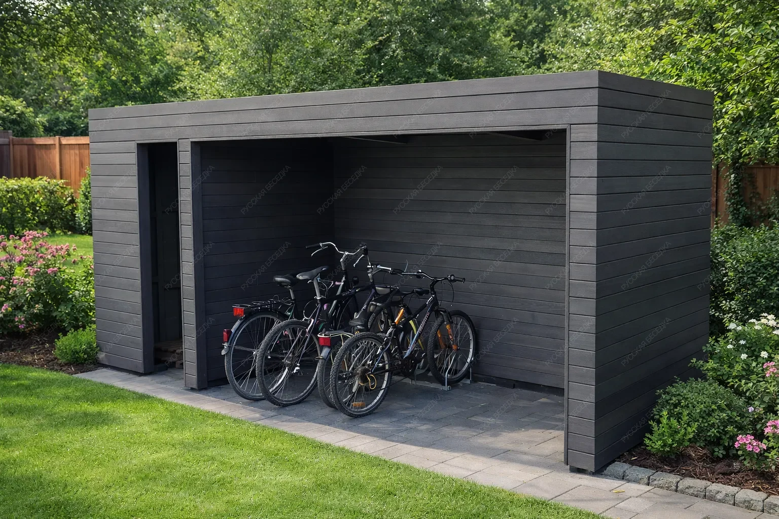 Деревянный гараж для велосипедов — это продуманное решение для хранения двухколёсной техники и сопутствующего инвентаря. Компактное строение из натурального дерева защищает велосипеды от дождя, снега, ультрафиолета и перепадов температур, продлевая срок службы узлов и сохраняя внешний вид рам. Внутреннее пространство организовано с учётом потребностей активных людей: предусмотрены удобные полки для шлемов, насосов, инструментов и смазочных материалов, а также крючки для подвешивания покрышек, велокомпьютеров или рюкзаков. Такая система хранения позволяет быстро найти нужную вещь и поддерживать порядок без лишних усилий. Изготовленный из качественной древесины, гараж гармонично вписывается в ландшафт загородного участка или городского двора, не нарушая эстетики окружающей среды. Дерево обеспечивает естественную вентиляцию, предотвращая образование конденсата, который вреден для металлических деталей. Конструкция рассчитана на длительную эксплуатацию и может быть выполнена в различных размерах, чтобы вместить от одного до нескольких велосипедов. Надёжные крепления и устойчивость к ветровым нагрузкам гарантируют сохранность имущества даже в сложных погодных условиях. Аккуратное размещение велосипедов освобождает полезную площадь гаража, сарая или балкона, делая повседневную жизнь более комфортной и организованной.
