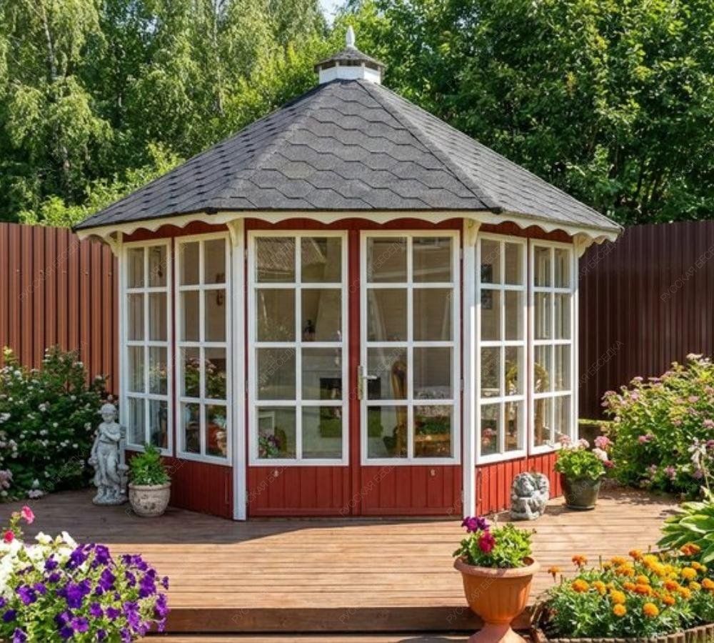 Современный ландшафтный дизайн и беседки - центральные элементы загородного участка. Беседка должна размещаться в таком месте участка, где вам будет комфортно находиться, а также она должна отвечать своему назначению и притягивать взгляды. Беседка является уникальным строением, с ее помощью можно отдохнуть за чашечкой кофе, укрыться от знойного солнца или провести шумный праздник в кругу семьи и друзей.