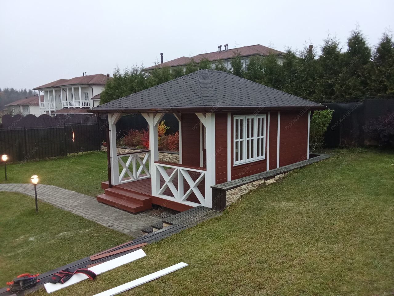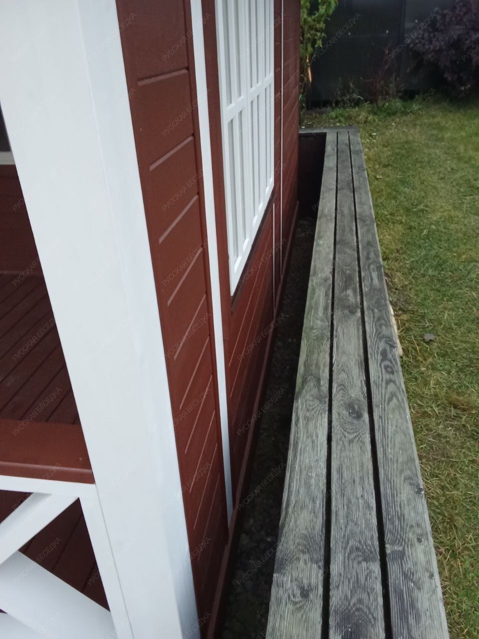 Имитация бруса 16×135 мм внутри, имитация бруса 21×135 мм снаружи.