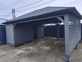 Навес из дерева послужит отличным парковочным местом для одного или нескольких автомобилей.