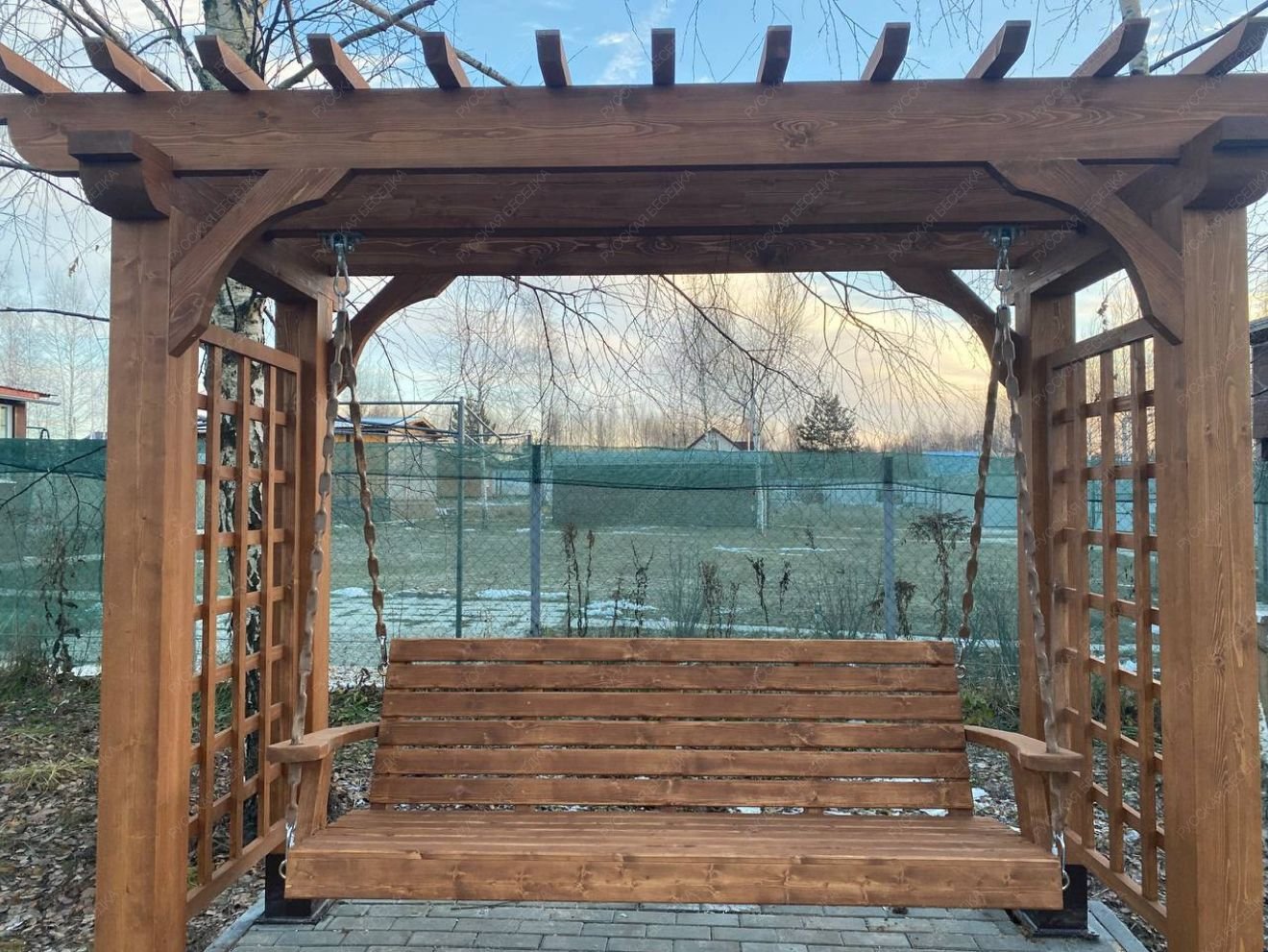 Деревянная пергола придаст вашему садовому участку теплую и уютную атмосферу.Также пергола может служить опорой для плетущихся растений - только представьте, как приятно находиться в окружении цветущего клематиса или пышных роз! Дополнительные элементы, такие как встроенное освещение, декоративные решетки, качели или скамейки, могут усилить визуальный эффект и создать еще более комфортное пространство. А если в конструкцию перголы добавить подиум, то он может служить местом для расслабления или стать сценой для семейных мероприятий.