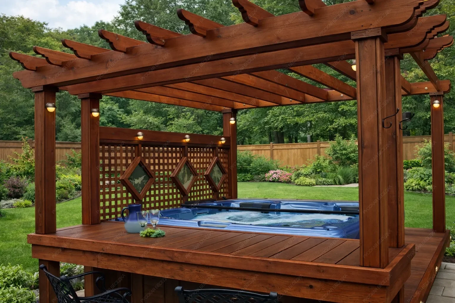 Перголы из дерева сочетают в себе природную красоту и современные дизайнерские решения, создают идеальное место для отдыха и различных видов досуга на открытом воздухе. Перголы могут стоять отдельно или быть частью композиции с другими элементами сада. Деревянная пергола придаст вашему садовому участку теплую и уютную атмосферу.Также пергола может служить опорой для плетущихся растений - только представьте, как приятно находиться в окружении цветущего клематиса или пышных роз! Дополнительные элементы, такие как встроенное освещение, декоративные решетки, качели или скамейки, могут усилить визуальный эффект и создать еще более комфортное пространство. А если в конструкцию перголы добавить подиум, то он может служить местом для расслабления или стать сценой для семейных мероприятий. Пергола с навесом обеспечивает надежную защиту от солнечных лучей, создавая тенистое пространство для отдыха. Она станет идеальным местом для встреч с друзьями, чтения книг или приема пищи на свежем воздухе. Любая пергола не только украшает ваш сад, но и предоставляет функциональное пространство для приятного времяпровождения на природе с семьей и друзьями.