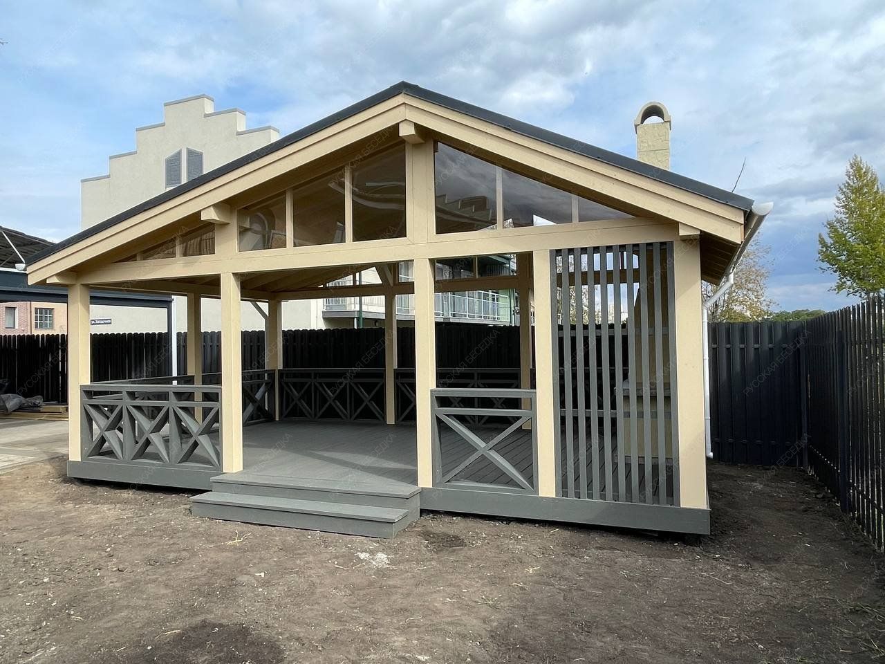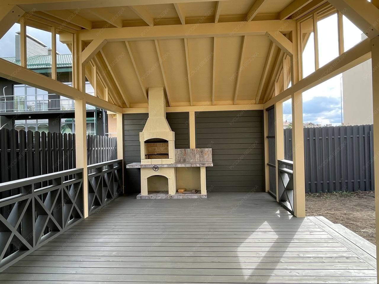 Беседка выполненная из лучших пород древесины, прослужит долгие годы и не потребует особого ухода и обслуживания. Специальные лакокрасочные материалы которые мы используем, предотвратят старение, гниение и заражение грибком конструкции кухни. Используемая огнебиозащита образует полупрозрачное полуматовое покрытие, стойкое к влаге, УФ-излучению, перепадам температуры и другим атмосферным воздействиям.