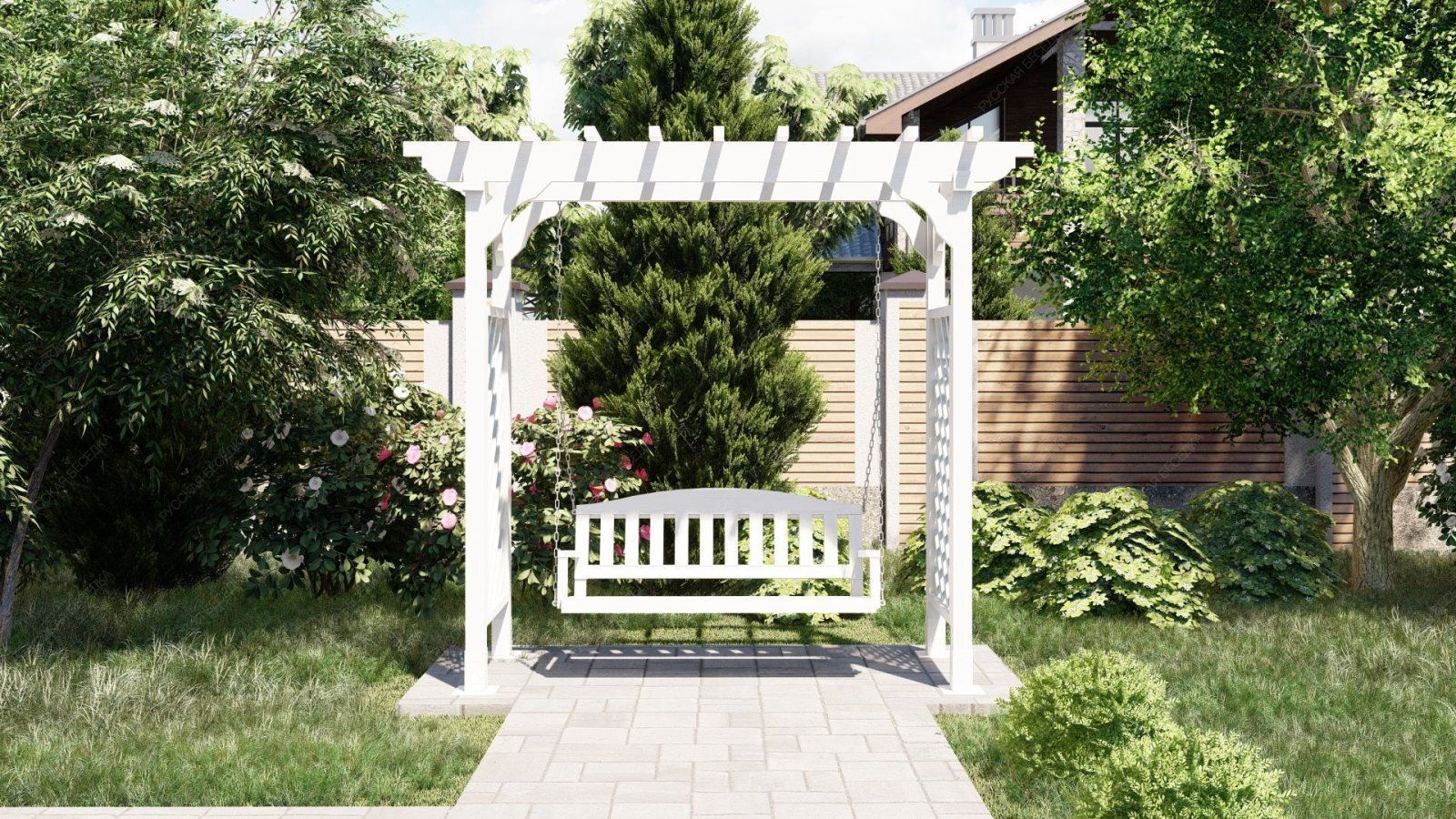 Эти качели идеально вписываются в ландшафт вашего участка, добавляя ему стильный и современный акцент. Они станут любимым местом для всей семьи, где можно провести время в общении и отдыхе.